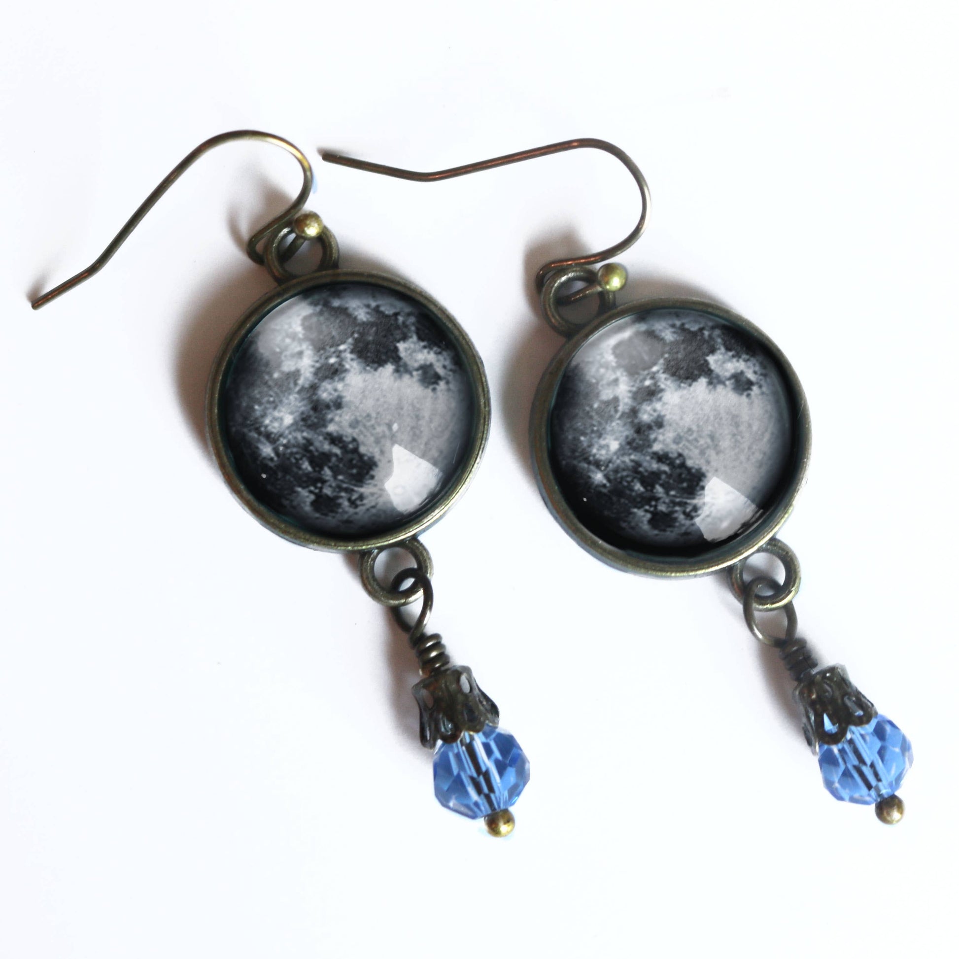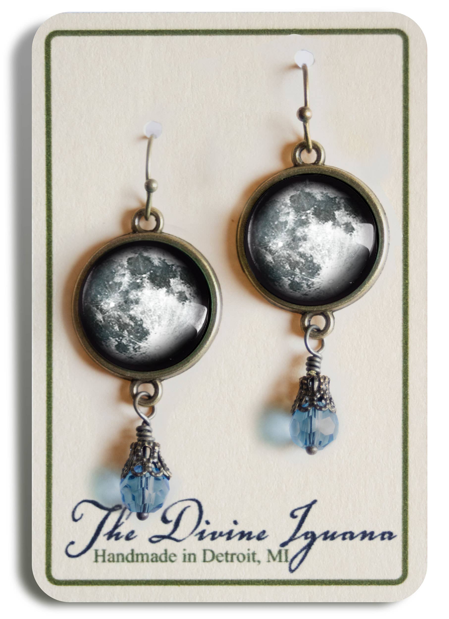 A long-standing best seller, our full moon earrings celebrate magic and mysticism. Pale blue moons with a sparkling accent bead make a statement with anything from jeans and a t-shirt to formal wear.