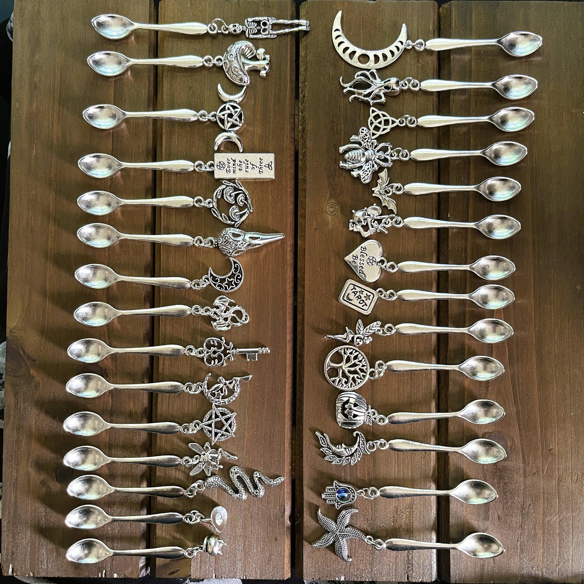 Our witchy little charm spoons are so cute and perfect for scooping herbs and incense powder. They also make great pendants for a necklace. Choose your own charm!